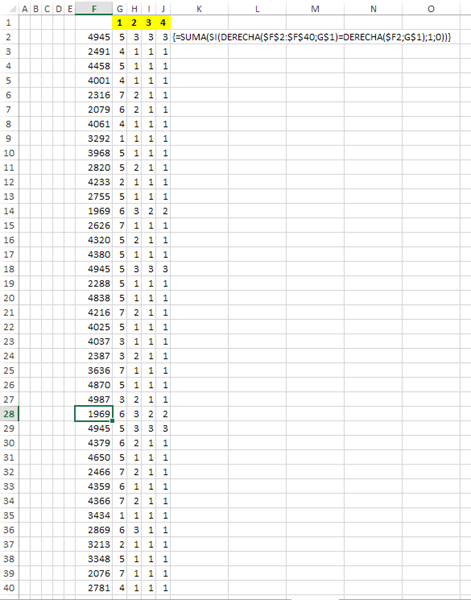 =SUMA(SI(DERECHA(F$1:F$40;LARGO($W4))=TEXTO($W4;"#");1;0))