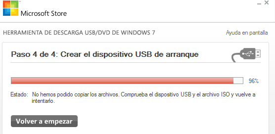 ¿Por qué windows 7 usb/dvd download tool me rechaza el xp?