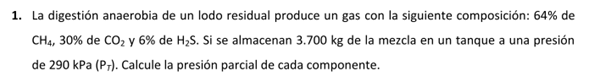 Necesito colaboración para resolver este problema de una tarea de físico química con respecto a un lodo residualç.