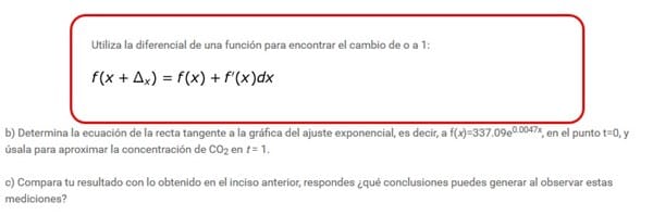 2. Ahora analiza haciendo uso del modelo exponencial propuesto como la función que define la concentración de CO2 y aplicando diferenciales. Luego debes aplicar y solucionar lo siguiente: