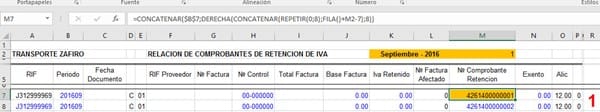 En la tercera debo colocar la misma fecha 201609 pero adjuntándole un numero consecutivo de 8 cifras y cuando sea el numero 1 debe estar rellenado con 0, debe quedar 20160900000001, y de allí hacia abajo debe quedar 20160900000002, 20160900000003, etc...