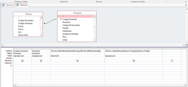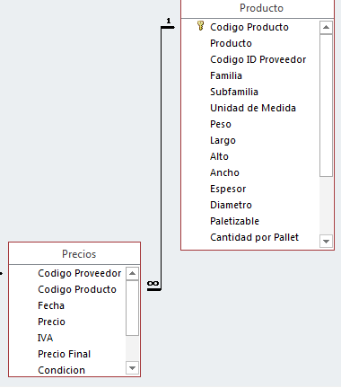 Tengo una BBDD donde existen 2 Tablas: "Productos" y " Precios"