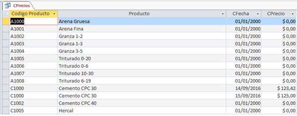 En la tabla precios se van cargando los códigos de los artículos con una fecha y a su vez el precio del articulo, así teniendo muchos registros con un mismo articulo.