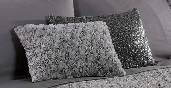 La cama mesilla y un baúlcito de decoración son blancos y uno envejecido en gris...