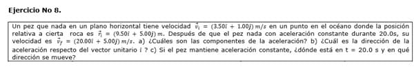 Un pez que nada en un plano horizontal tiene velocidad 〖 v⃗〗_i = (3.50î + 1.00ĵ) m/s en un punto en el océano donde la por