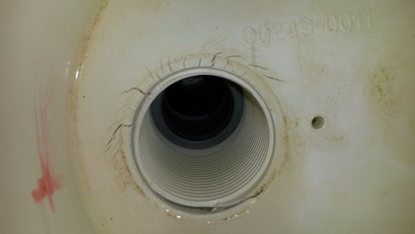 Como se ve en la imagen en el fondo del skimmer hay fugas de agua por las fisuras.