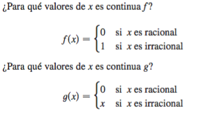 g(x) es continua solo en el punto x=0 y en los demás discontinua
