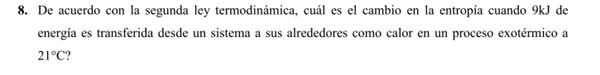 Requiero de ayuda para el ejercicio, en el cual se debe usar la segunda ley de termodinámica.