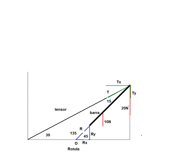 Asi hallarias Rx y Ry ... y luego R que estaria dirigida hacia el extremo superior de la barra articulada.