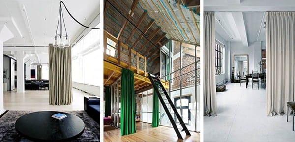 Dividir ambientes con cortinas, estores... En techo escayola