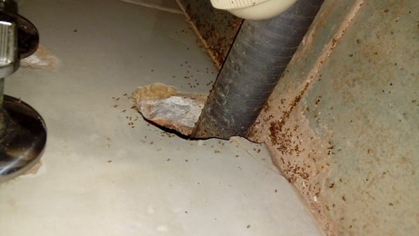 Esta chapucilla está en el baño de la casa de campo. Me gustaría me aconsejaseis sobre cómo tapar el agujero. Es mejor usar cemento, ¿cemento cola u otro material diferente?