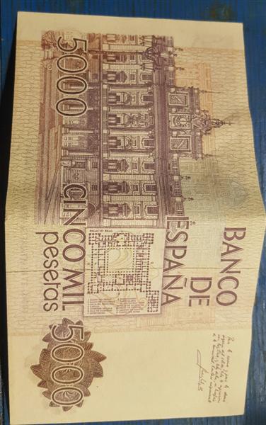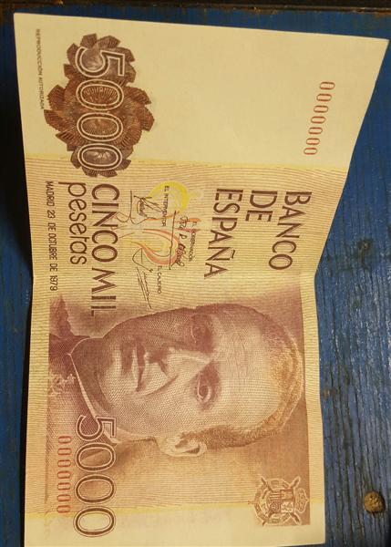 Valor de billete de 5.000 pesetas con numeración 0000000