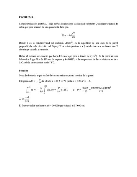 Siendo x distancia Conductividad del material. Bajo ciertas condiciones la cantidad constante Q calorías/segundo de calor.