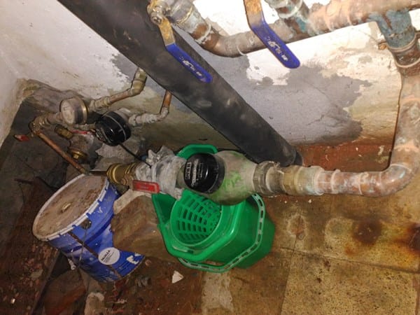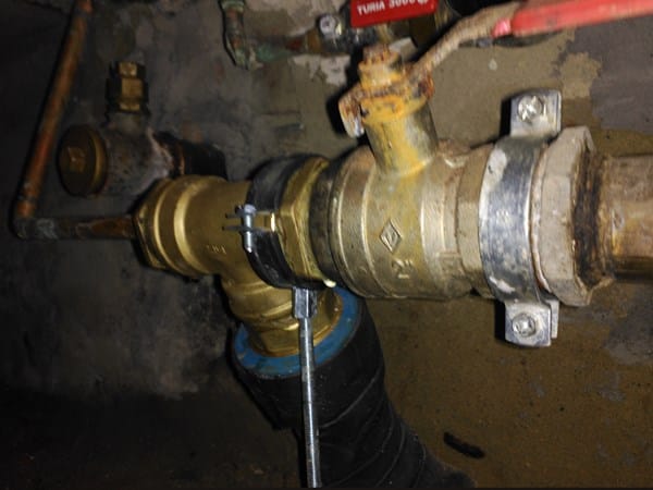 Acometida agua. Entrada de agua a contador comunitario tubo super estrecho, y tubo de salida muchísimo más ancho.
