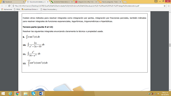egrales como integración por partes, integración por fracciones parciales, también métodos para resolver integrales de funciones exponenciales, logarítmicas, trigonométricas e hiperbólicas.
