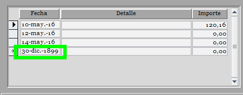 En este subformulario como se puede ver en la imagen el ultimo registro en vez de salir la palabra Nuevo aparece esta fecha