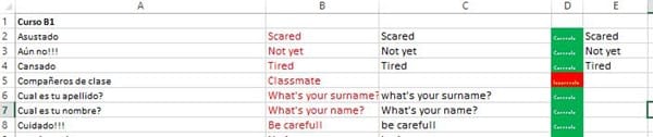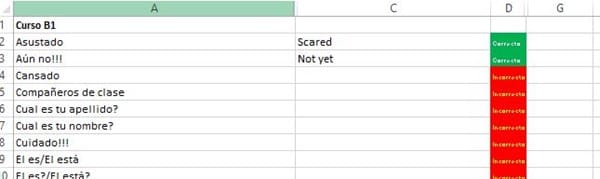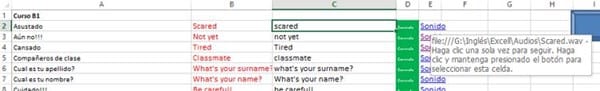 La intención del excel es enseñar a niños palabras en inglés básico y cuando acierten que se reproduzca el sonido.