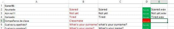 Me parece que recién estoy entendiendo -porque no lo mencionaste antes- que tienes varios nombres de archivo -no solo scared.wav- en alguna parte de tu planilla. Es decir uno por cada expresión a traducir.