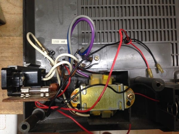 En un conector en el que se puede conectar directamente un transformador de 9dc para alimentar todo el radiocasette hay un fusible de 1,25A.