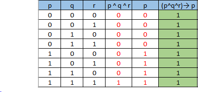 (p ^q ^ r) --->p