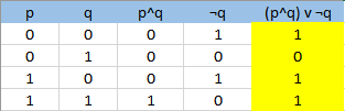 Escriba la proposición compuesta propuesta en lenguaje natural y determine su valor de verdad, a partir del valor de verdad
