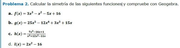 Simetría central respecto al punto (0,0) también llamada impar. Son las funciones que cumplen