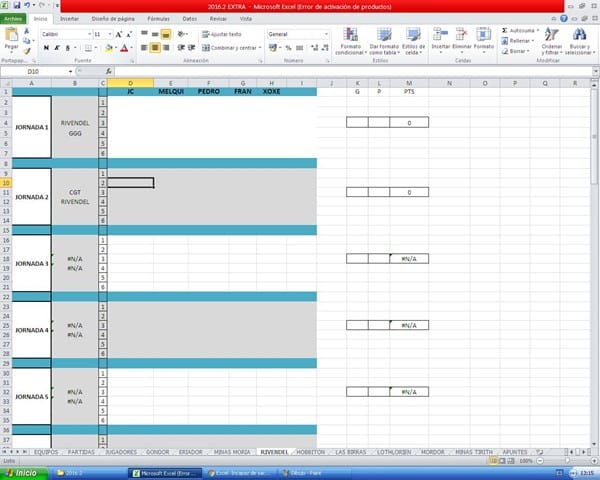 El caso es que para un solo dato me sale bien. En cuanto empiezo a rellenar el calendario y hay más de 1 dato empieza a no pasarme los datos a las hojas de equipos, en la hoja de RIVENDEL me sale un encuentro de gondor... Otro encuentro no me lo reconoce, si lo cambio de posición en el calendario si lo reconoce. Vamos que se vuelve loco. He repasado la fórmula 20 veces y no entiendo como es posible que en la fórmula para RIVENDEL me ponga gondor si en teoría no tiene que buscar ese parámetro.
