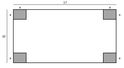 Un fabricante de cajas de cartón desea elaborar cajas abiertas a partir de piezas de cartón rectangulares de 10 in x 17 in cortando cuadros iguales en cuatro de las esquinas y doblando hacia arriba los lados.