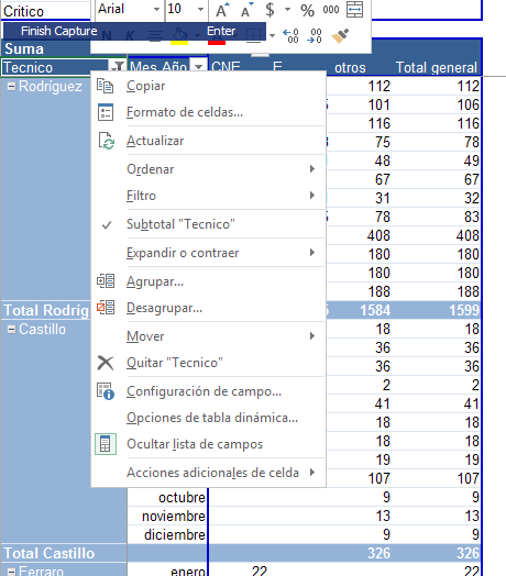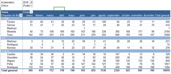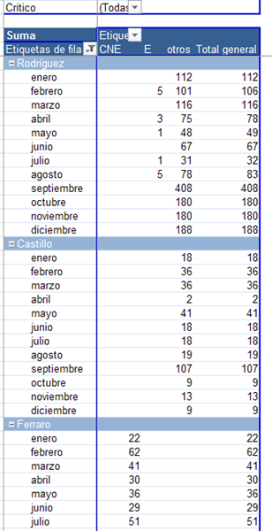 Cuando haya nueva información en la base, ya sabes, sólo tienes que actualizar la tabla dinámica y tendrás los datos en este cuadro.