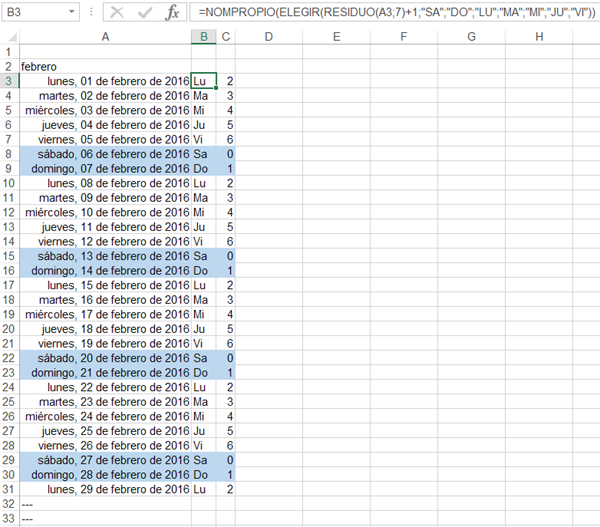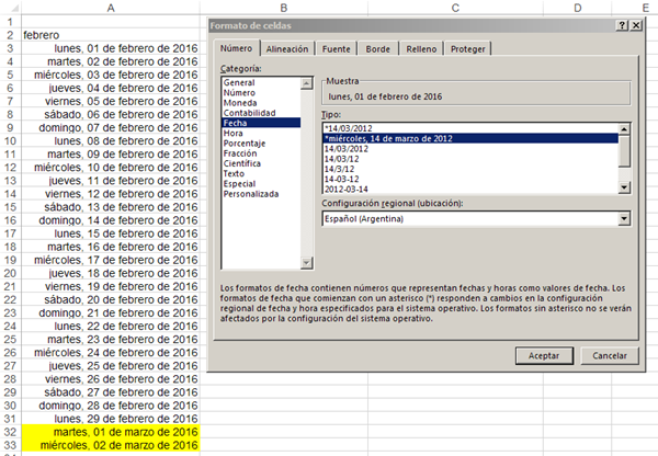 Que fórmula debo utilizar en excel para que cuando yo escriba en la celda (A2) el nombre del mes por ejemplo "Octubre" o cualquier mes del año, partir de la celda (A3) hacia abajo me ponga las fechas que contiene ese mes por ejemplo " martes 25 de Octubre del 2016". Y en la celda (A4 )me ponga miércoles 26 de Octubre del 2016 y así sucesivamente hasta que se completen todos los días de ese mes.