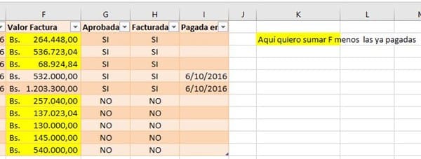 Ahora vengo a pedir que me den una fórmula para sumar SOLO las cantidades NO PAGADAS.