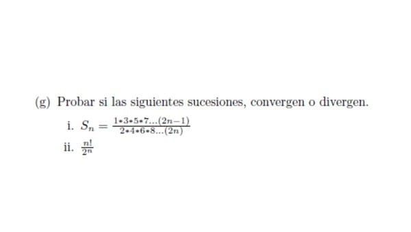 Por favor colaborarme con el siguiente ejercicio para probar si las siguientes sucesiones, convergen o divergen.
