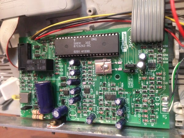 Lo he desmontado, le he quitado la memoria del zócalo, le he movido los condensadores de la placa para ver si habían mal contacto, he soldado alguno en la placa para descartar mala conexión sobre la misma, lo he vuelto a montar todo y mi sorpresa fue que funcionaba a la perfección hasta la otra noche que nos despertó con un ruido como si tuviera interferencias. Lo apague y lo encendí, el ruido se quito y volvió a quedarse si recepción de llamada. No suena cuando pulsan el timbre pero el video funciona y todo lo demás si lo conectamos manualmente, pero no atiende llamadas
