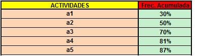 Si a4 como en el cuadro de ejemplo tiene frecuencia 81% y a5 tiene 87%, que solo copie a4 porque es el que tiene el primer valor igual o mayor (81%) como indica la condición.