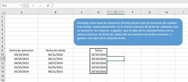 Que solo muestre en la fecha de admisión las fechas mayores o iguales al valor de fecha (05/06/2016)