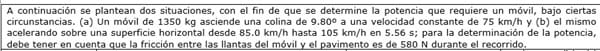 Siendo ...Potencia = Fuerza x velocidad = 2875 N x (75000/3600) m/seg = 60 Kwatts.aprox.