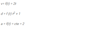 En el movimiento uniformemente acelerado se manifiestan 3 magnitudes: distancia, velocidad y aceleración. A partir de la relación de dichas magnitudes con el tiempo se establecen las siguientes funciones.