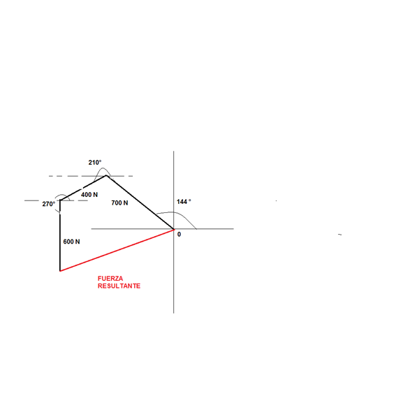 Ayúdenme a graficar apropiadamente y a equilibrar este sistema de fuerzas con el método del paralelogramo. Estaré sumamente agradecido. Ya estoy un poco fastidiado de éste trabajo. F1=700N. Ángulo 144 grados. F2=400 N. Ángulo 210 grados. F3= 600N. Ángulo 270 grados.