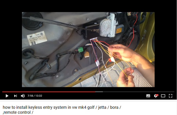 Tendría que des montar la carcasa de la puerta del conductor y empalmar la centralita con los cables del cierre centralizado que pasan por los mandos del conductor, localizando que cables dan la orden de cierre, la orden de apertura, los que conectan con los intermitentes y los que conectan con la bateria para alimentar la centralita.