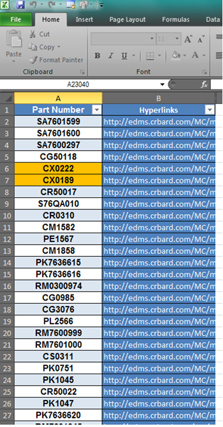 1 columna tiene numeros de parte y la otra tiene solo hipervinculos
