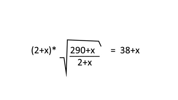 ¿Cuanto es "x" si...(2x)*raiz cuadrada de (290+x/2+x)=28+x?