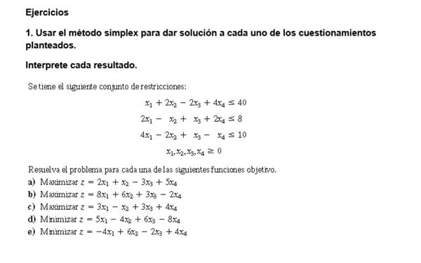Y una vezx terminada la cuarta tabla ya no quedan coeficientes negativos en la fila Z en las columnas X1, X2, X3, X4 luego se ha terminado la optimización y los resultados son los que aparecen en la columna solución.