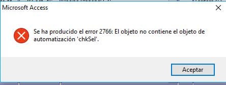 Se ha producido el error 2766 el objeto no contiene el objeto de automatización ' chkSel'.