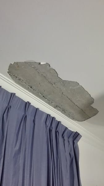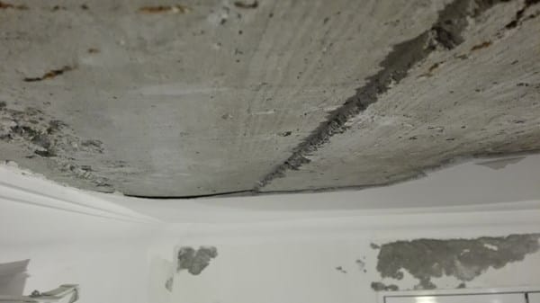 Hay zonas del techo de mi piso que tienen grietas y zonas sopladas, todo en zonas localizadas del perímetro. Adjunto fotos de zona que he retirado un trozo para poder ver como estaba el tema y hacer fotos.