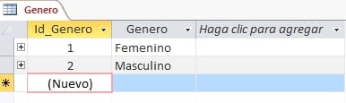 Tabla 3: Genero (Campos: Id_Genero, Genero)