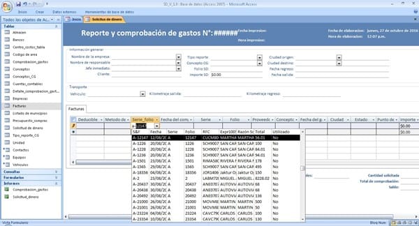 En un formulario registro los datos de la comprobación de gastos, los cuales están en una Tabla llamada Comprobacion_gastos, y tengo una Tabla llamada Factura, la cual se alimenta con los datos de las facturas que se han expedido a la empresa, tengo otra tabla que se llama Detalle_Comprobacion, la cual la tengo un subformulario, En el formulario de Comprobación de gastos puse el subformulario Detalle_comprobacion, las tablas Comprobación de gastos y Detalle_comrpobacion están relacionadas por un campo llamado IdCG.