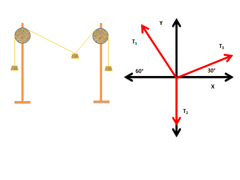 como realizo el analisis matematico para calcular F1, F2 F3 de el sistema mostrado anteriormente teniendo en cuanta que las masa son m1=80g, m2=50g y m3=70g
