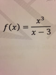$$\begin{align}&\lim_{x \rightarrow 3^+}{\frac{x^3}{x-3}}= +\infty\\&\lim_{x \rightarrow 3^-}{\frac{x^3}{x-3}}= -\infty\end{align}$$Ahora, para hallar los intervalos de crecimiento vasta con derivar la función f(x) y resolver las siguientes inecuaciones: