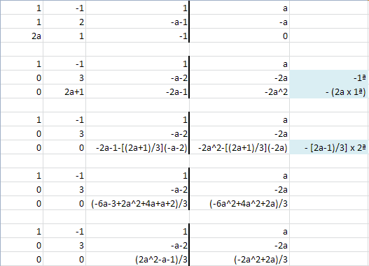 Ahora vamos a ver par que valores de a se hacen cero las celdas de la última fila
