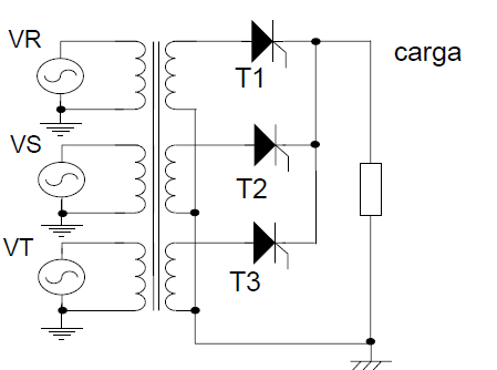El tiristor 1 sigue conduciendo cuando v1 se hace negativa, ¿por qué? ¿No ha cambiado de polaridad y entonces se produce bloqueo forzado?